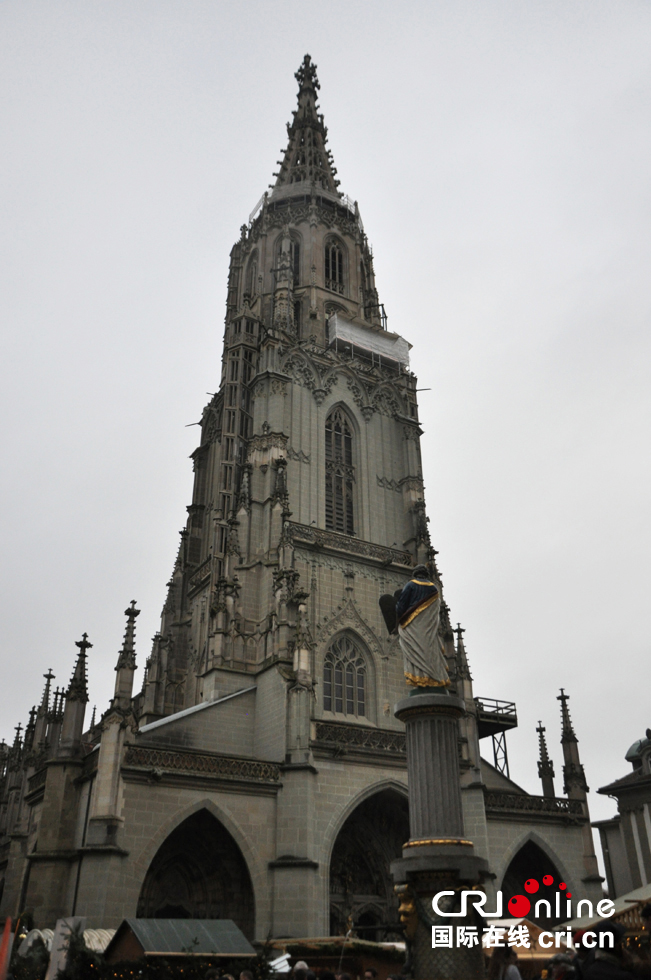 老城的大教堂街上坐落着瑞士最高的教堂——伯尔尼大教堂。这座造型宏伟的哥特式建筑始建于1421年,在1893年随着100.6米高的塔楼建成而竣工。这里有瑞士最大的钟——1611年在教堂铸造的一口重达10吨的钟,也有一架由5404根铜管建成的超大管风琴。正门上描述《最后的审判》场景的浮雕和教堂里15世纪的彩绘玻璃窗是这座教堂的另两大看点。沿着344级台阶的螺旋楼梯登上塔楼的第二层瞭望台,可鸟瞰伯尔尼全景。在平安夜当天参观伯尔尼大教堂的无心之举给自己带来了两重惊喜:遇见排练中的唱诗班的孩童,那是与天籁之声的邂逅;一年中只有四个下午的特定时间段内大教堂的九个编钟才会全部敲响,当记者登高远眺,神圣的钟声在上空回荡,伯尔尼全景铺陈在眼前,所能做的便是将这短暂的片刻定格在影像之中。