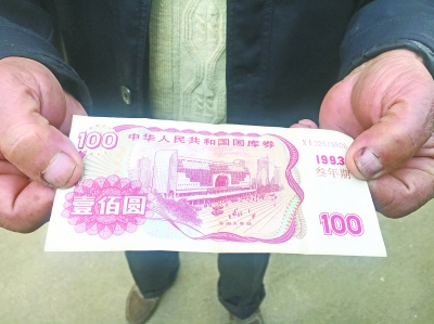 朱爹爹展示这张1993年的国库券记者张全录 摄