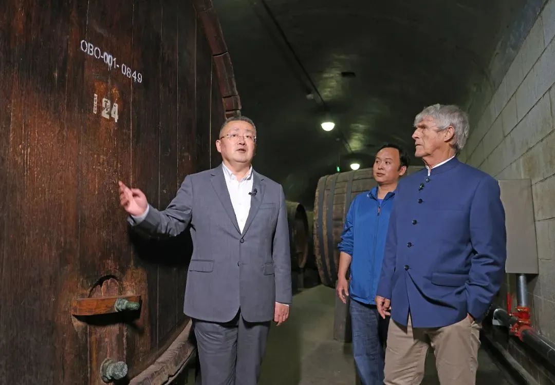 张裕百年酒窖三只巨大的橡木桶让米卢颇为赞叹。当得知每只橡木桶能储酒15000升,如果一个人从20岁开始喝酒,每天喝一斤,要喝到102岁才能把一只桶里的酒喝完时,米卢开心地说:“葡萄酒在哪,我要喝一杯。”
