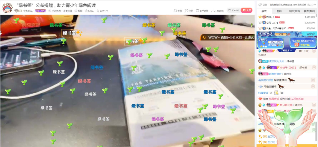 2023年4月23日是第28个世界读书日,虎牙公司携手广州市番禺区慈善会,发起了“绿书签”公益捐赠活动,在这一活动中,虎牙公司上线了行业首创的“绿书签”公益互动彩蛋玩法。技术与创意的结合,点亮了护苗理念,也吸引了虎牙直播平台头部主播主动发挥自身影响力,号召粉丝共同关注并支持青少年绿色阅读。