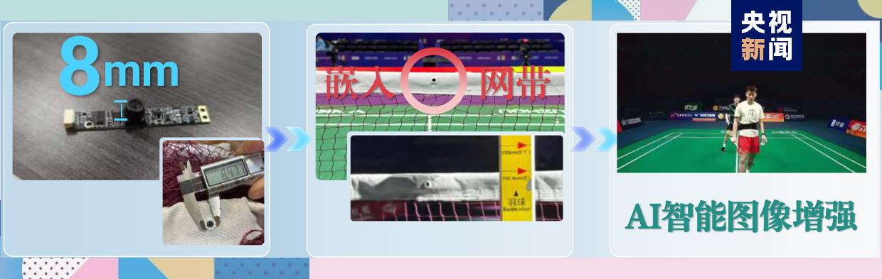 网带藏镜头,零距离“对阵”球员。为丰富观众的观看视角,羽毛球比赛中采用了总台自主研发的特种设备——羽毛球网带隐藏摄像机。它体积小巧,隐藏在网带正中,可以以低角度正面拍摄到运动员的每一个细微表情,网前带球时更能带来扑面而来的冲击力。